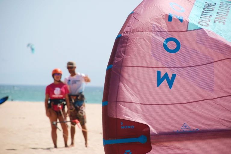 Todo el material necesario para los cursos está incluido en el precio: neopreno, arnés, chaleco, casco y equipos de kitesurf o wingfoil de la marca DUOTONE y FANATIC.